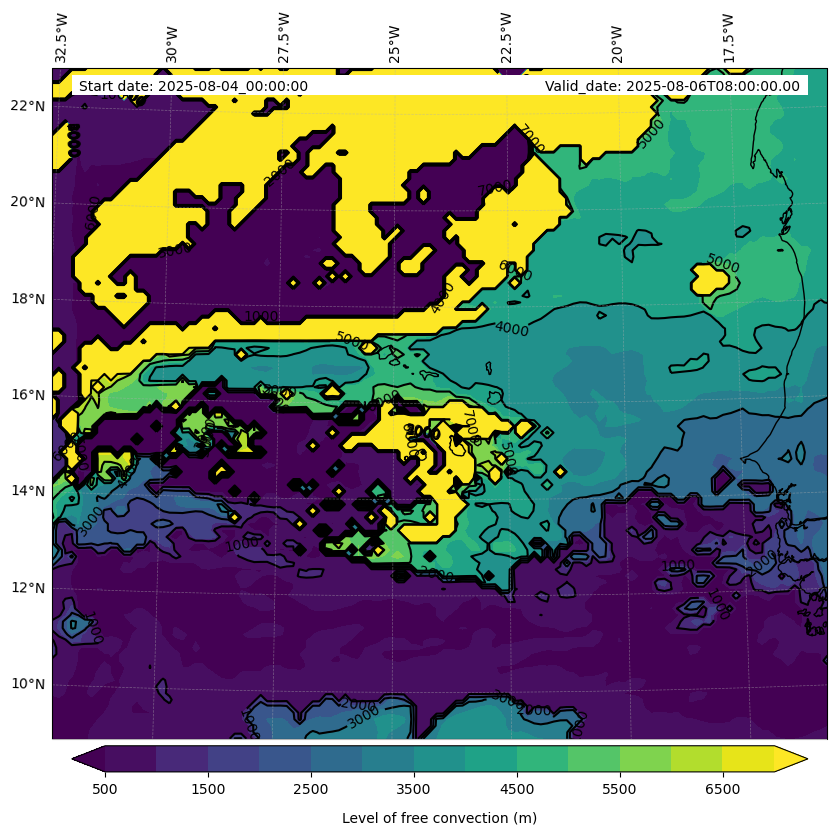 - Level of free convection (m)