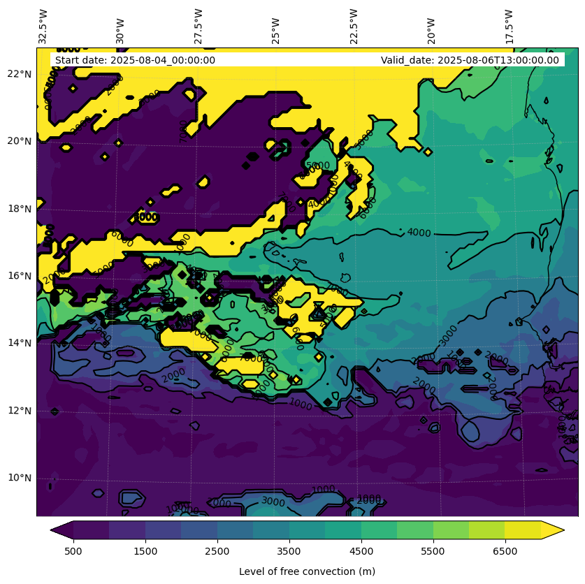 - Level of free convection (m)