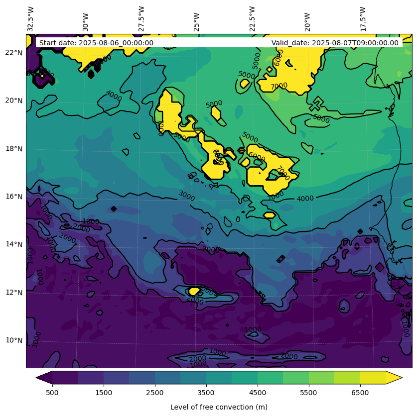 - Level of free convection (m)