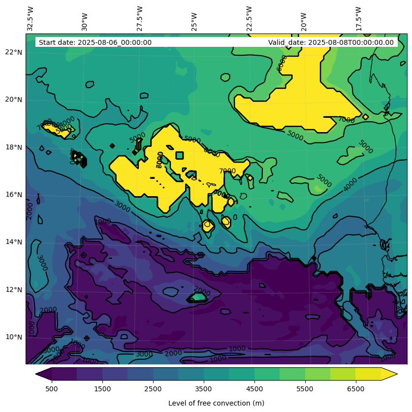 - Level of free convection (m)