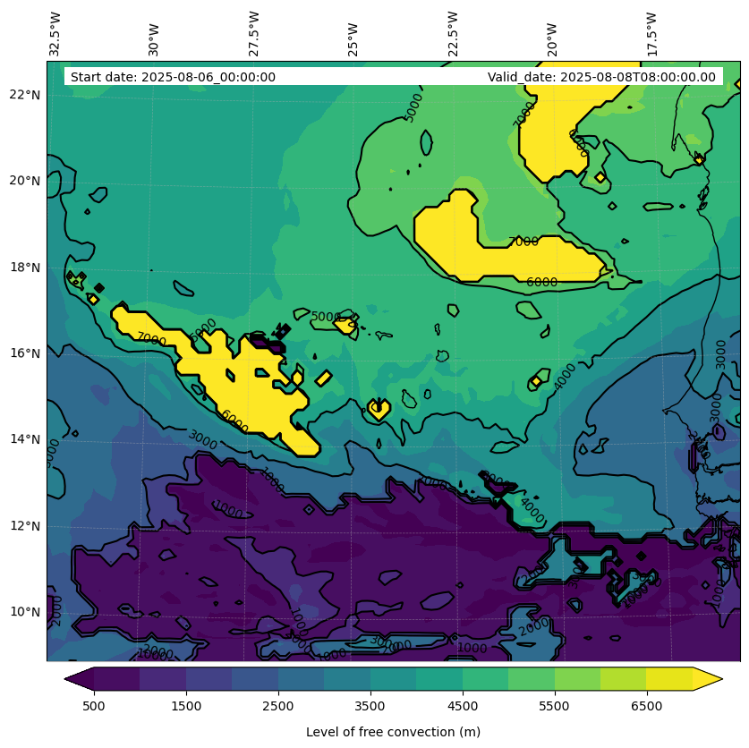 - Level of free convection (m)