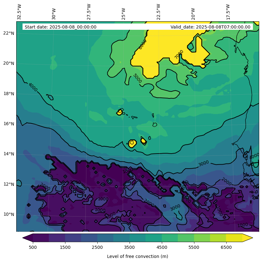 - Level of free convection (m)