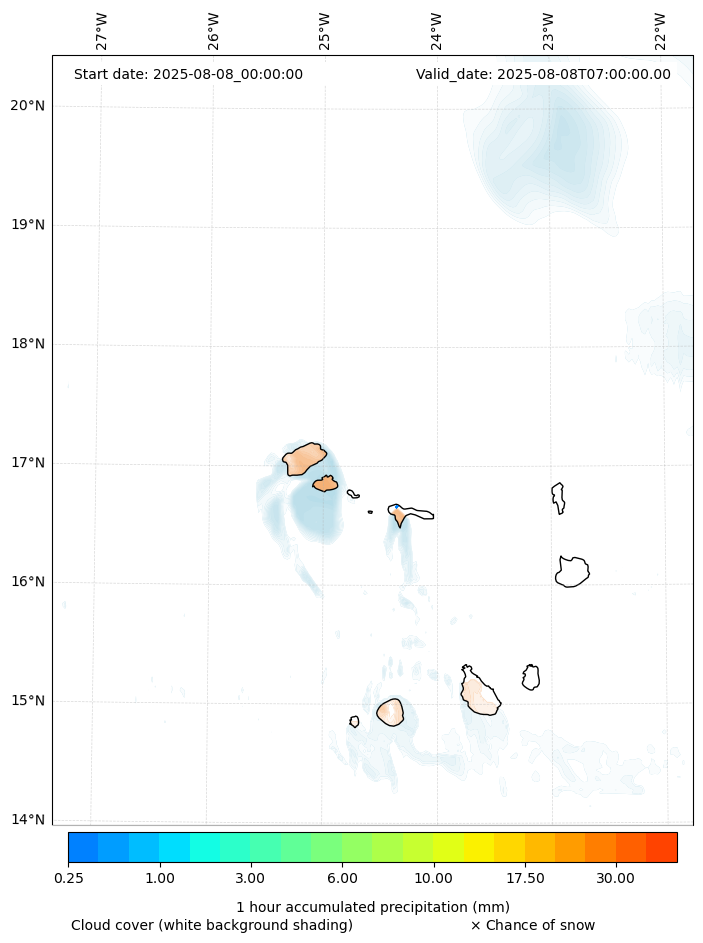 - Snow mixing ratio (g kg¯¹)