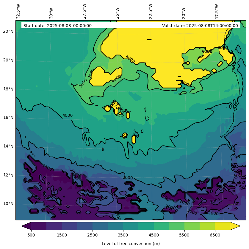 - Level of free convection (m)