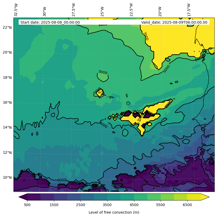 - Level of free convection (m)