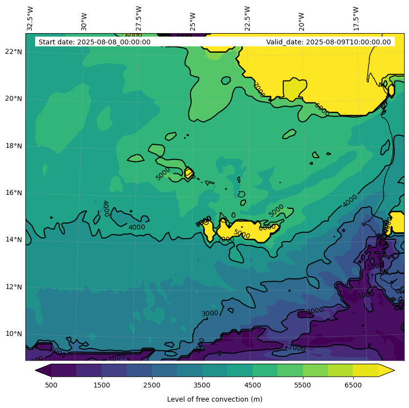 - Level of free convection (m)