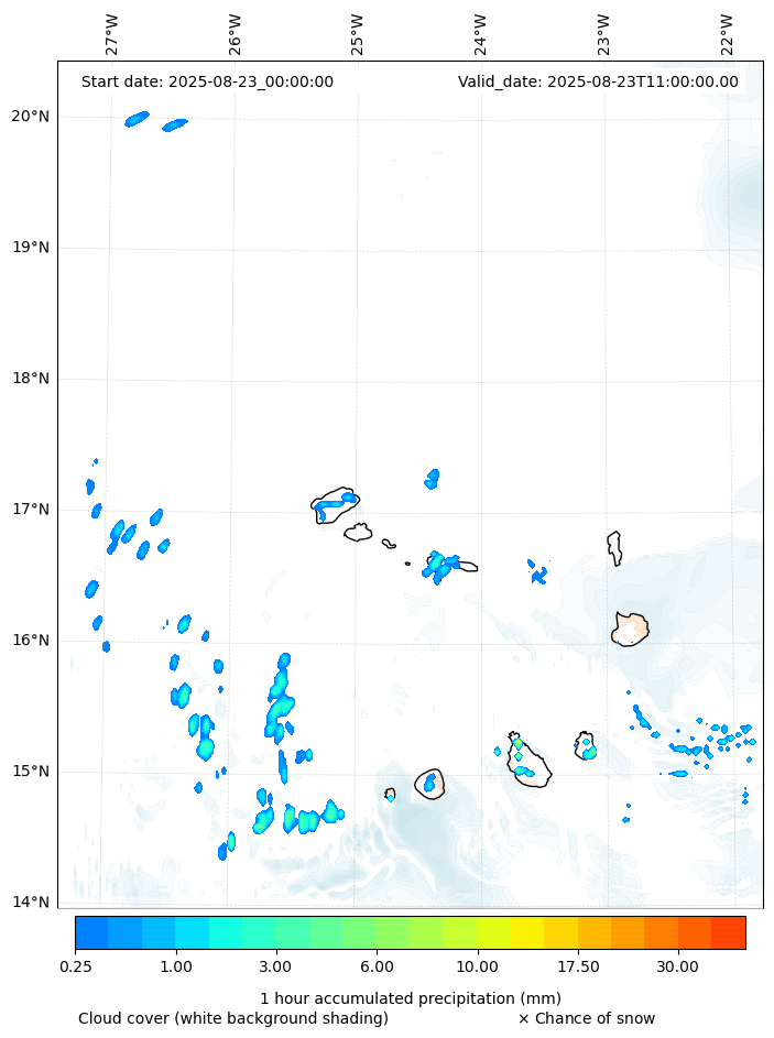 - Snow mixing ratio (g kg¯¹)