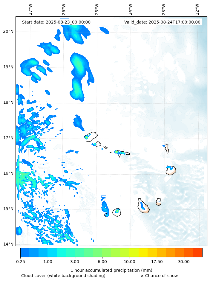 - Snow mixing ratio (g kg¯¹)