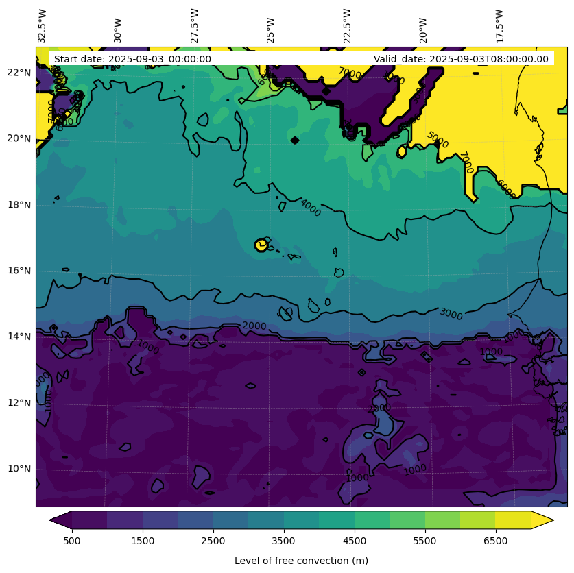 - Level of free convection (m)