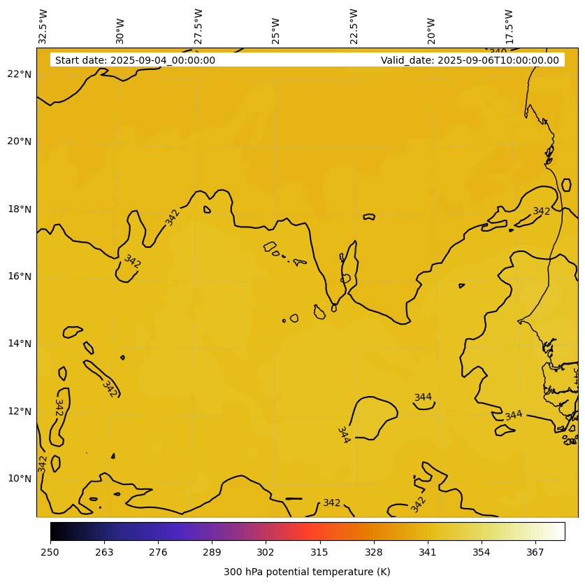 - Equivalent Potential Temperature (K)- 300 hPa