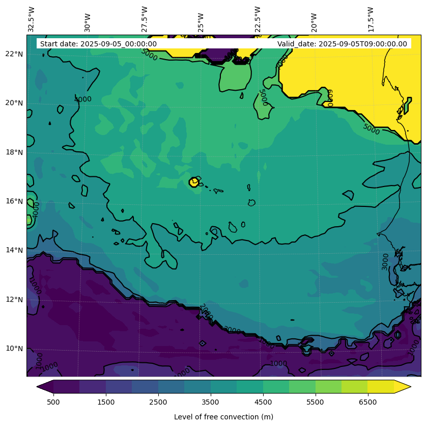 - Level of free convection (m)