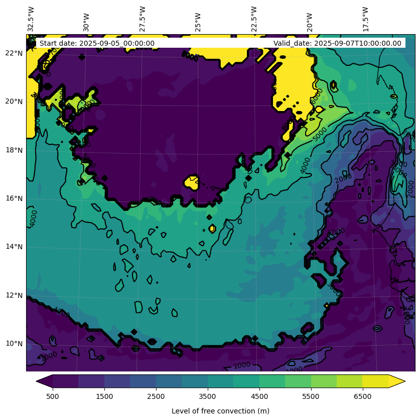 - Level of free convection (m)