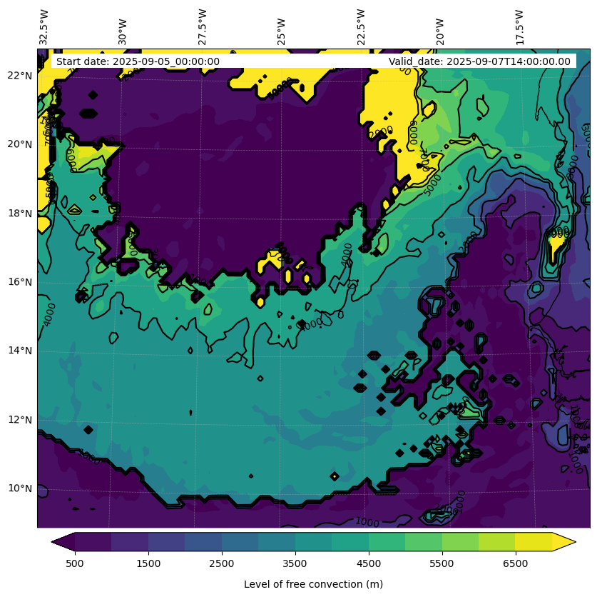 - Level of free convection (m)