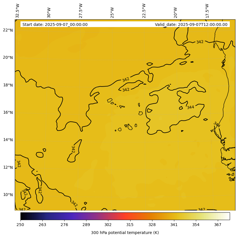 - Equivalent Potential Temperature (K)- 300 hPa