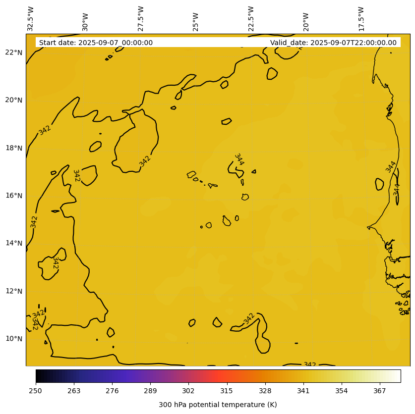 - Equivalent Potential Temperature (K)- 300 hPa