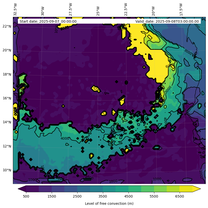- Level of free convection (m)