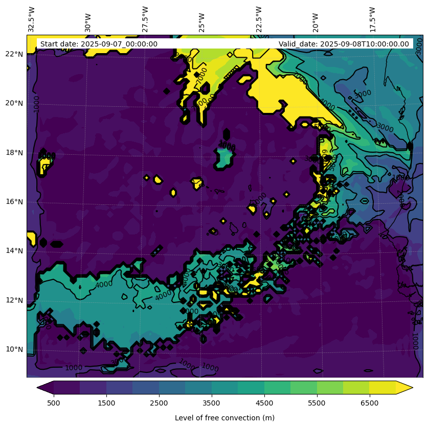 - Level of free convection (m)