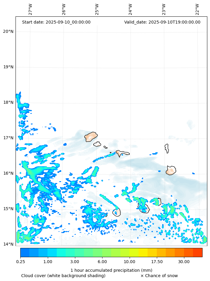 - Snow mixing ratio (g kg¯¹)