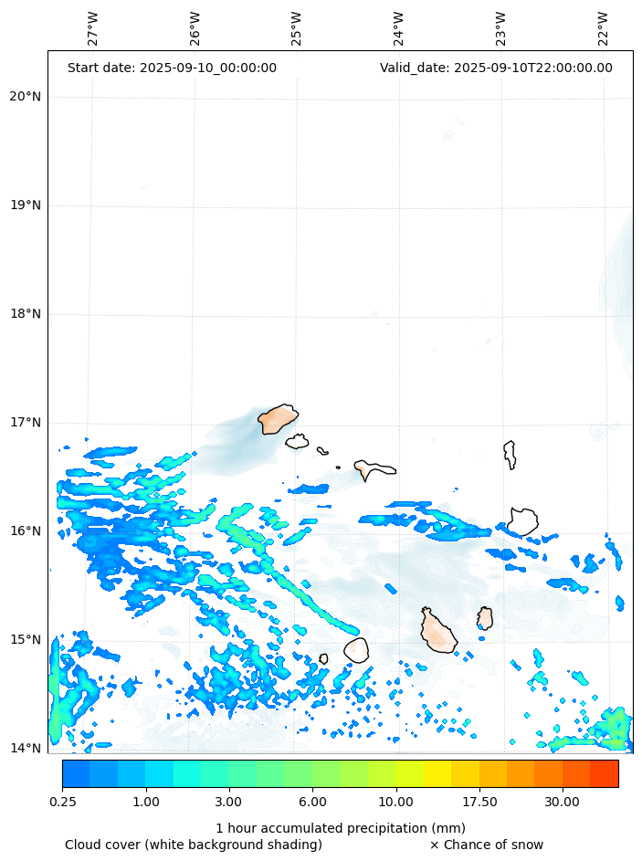 - Snow mixing ratio (g kg¯¹)