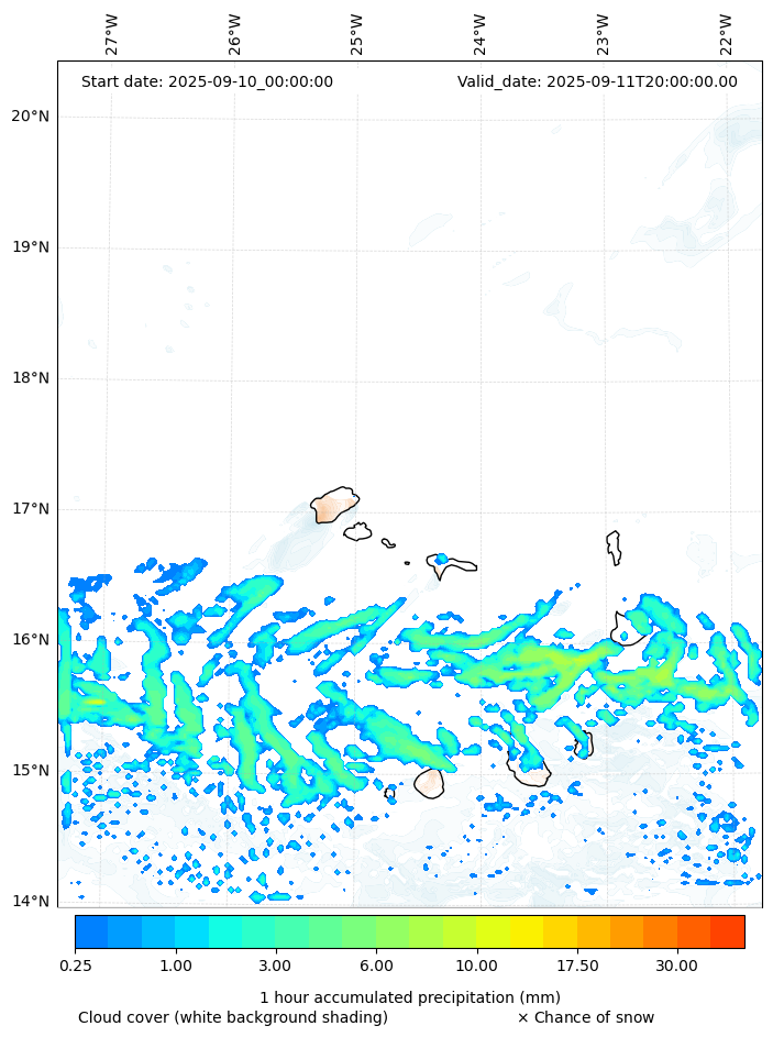 - Snow mixing ratio (g kg¯¹)