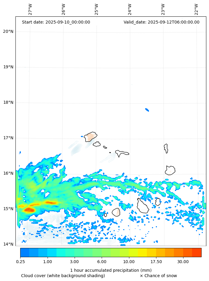 - Snow mixing ratio (g kg¯¹)
