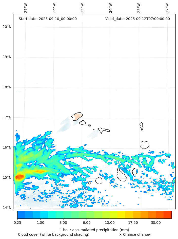 - Snow mixing ratio (g kg¯¹)