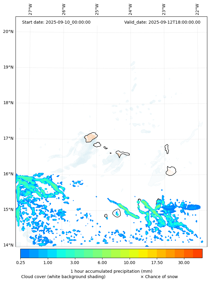 - Snow mixing ratio (g kg¯¹)